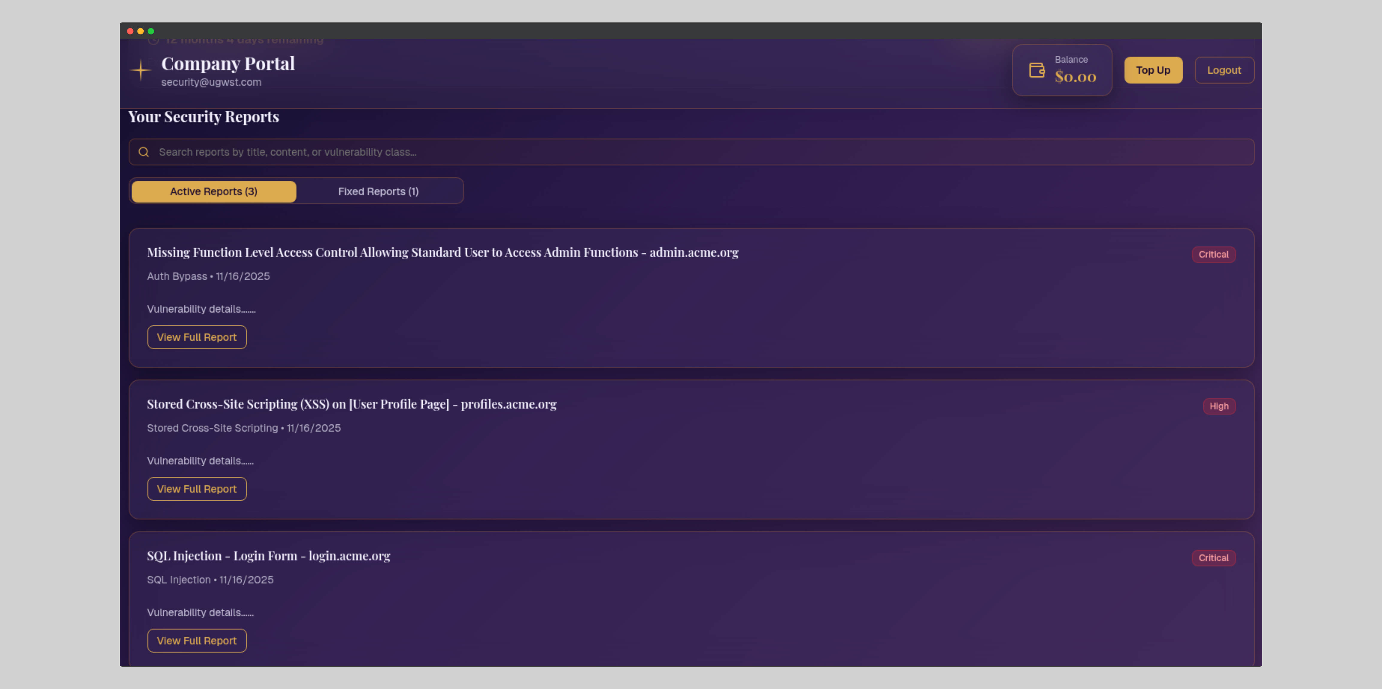 Talaria provides a full management service for the entire program lifecycle. This lets any company incorporate a Bug Bounty program into their existing vulnerability management procedures. They can use the same tools like ticketing systems and reporting mechanisms.
